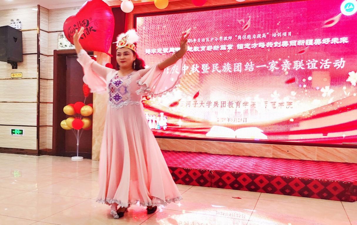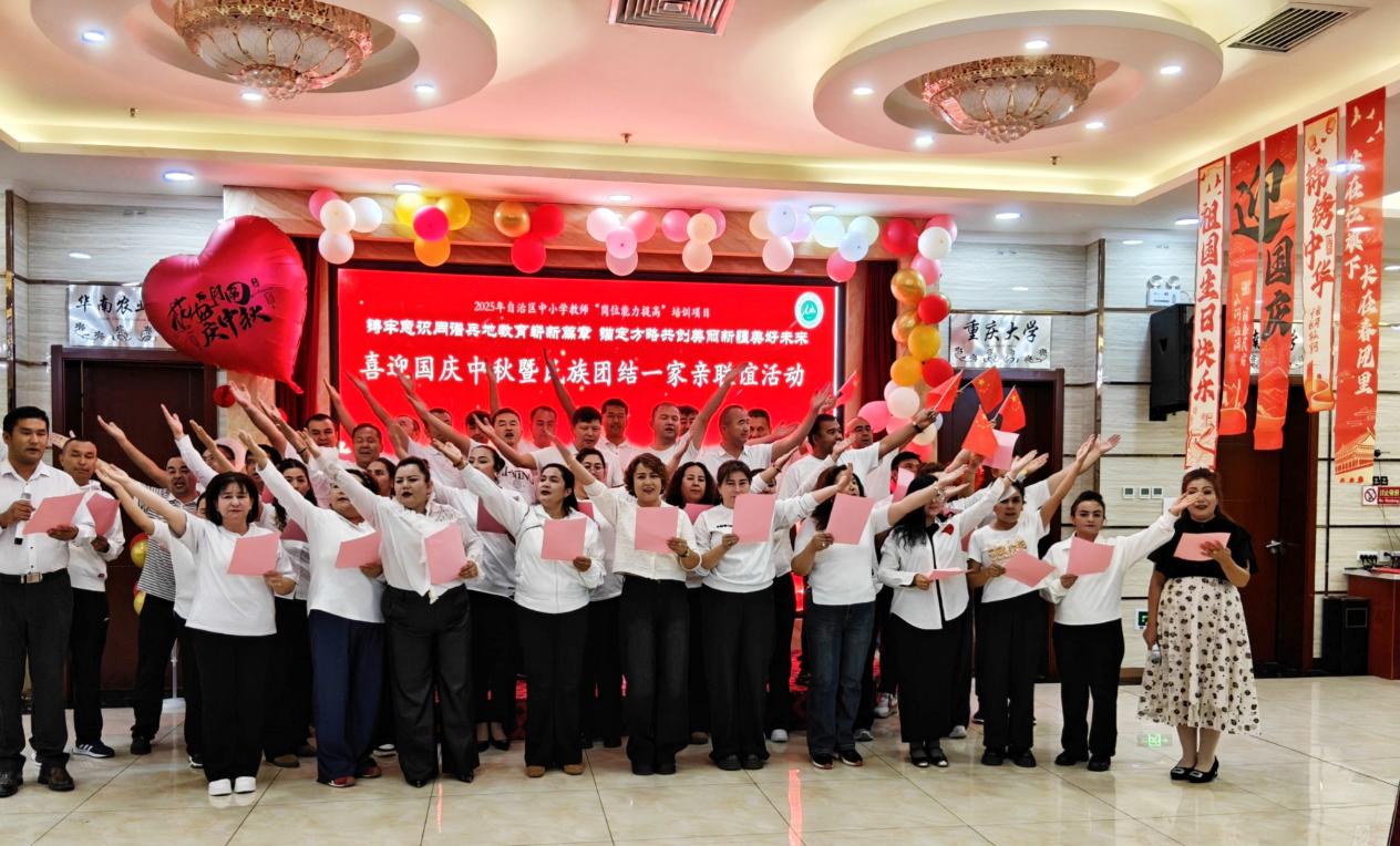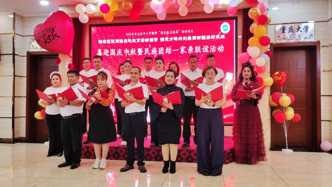 为庆祝中华人民共和国成立76周年、新疆维吾尔自治区成立70周年,铸牢中华民族共同体意识,凝聚努力建设社会主义现代化新疆的磅礴力量,9月25日晚,兵团教育学院师范学院领导、项目团队的教师、班主任与自治区中小学教师“岗位能力提高”培训班100名参训教师欢聚一堂,举办“铸牢意识同谱兵地教育崭新篇章,锚定方略共创美丽新疆美好未来”喜迎国庆中秋暨民族团结一家亲联谊活动。