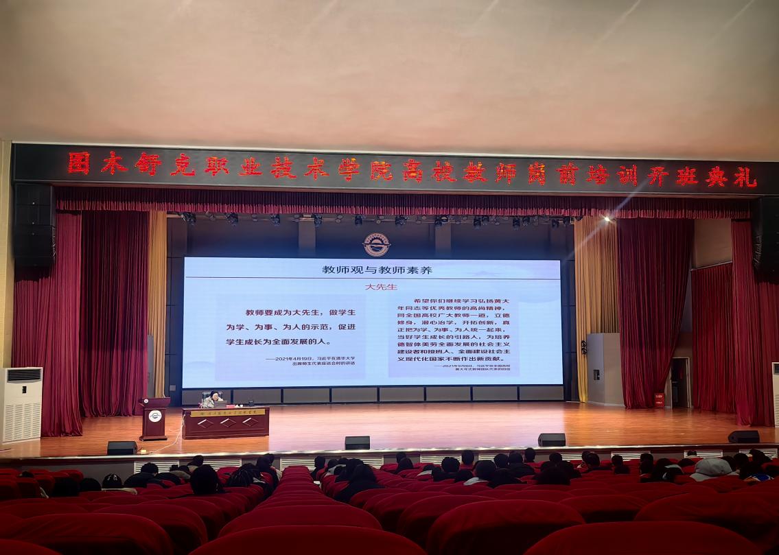 2026年1月22日,图木舒克职业技术学院高校教师岗前培训开班典礼在第三师图木舒克职业技术学院隆重举行。图木舒克职业技术学院党委副书记、副院长胡曦,兵团教育学院副院长盛季,培训团队及104名参培学员参加了典礼。
