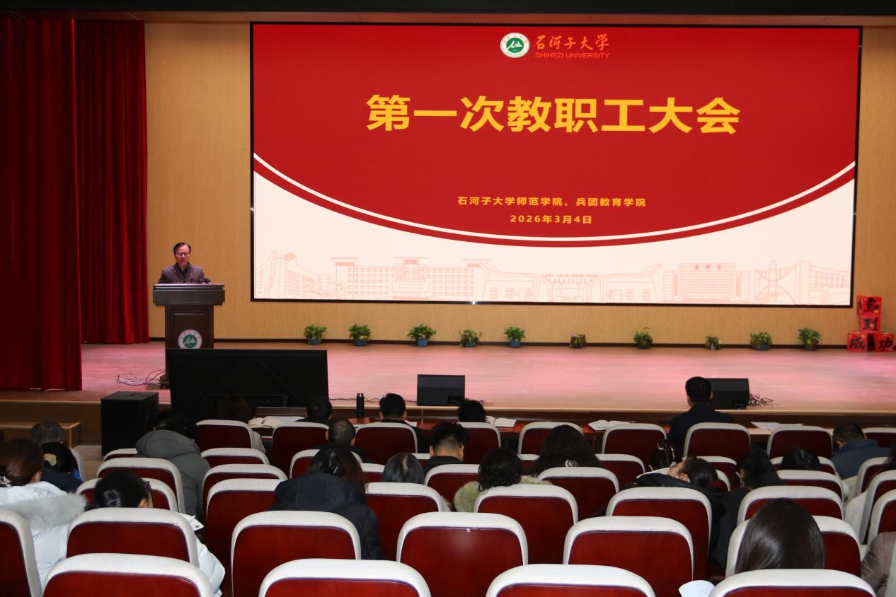 为全面部署年度重点工作,凝聚发展合力,3月4日,师范学院(兵团教育学院)召开2026年度第一次教职工大会。学院领导班子及全体教职工参会。