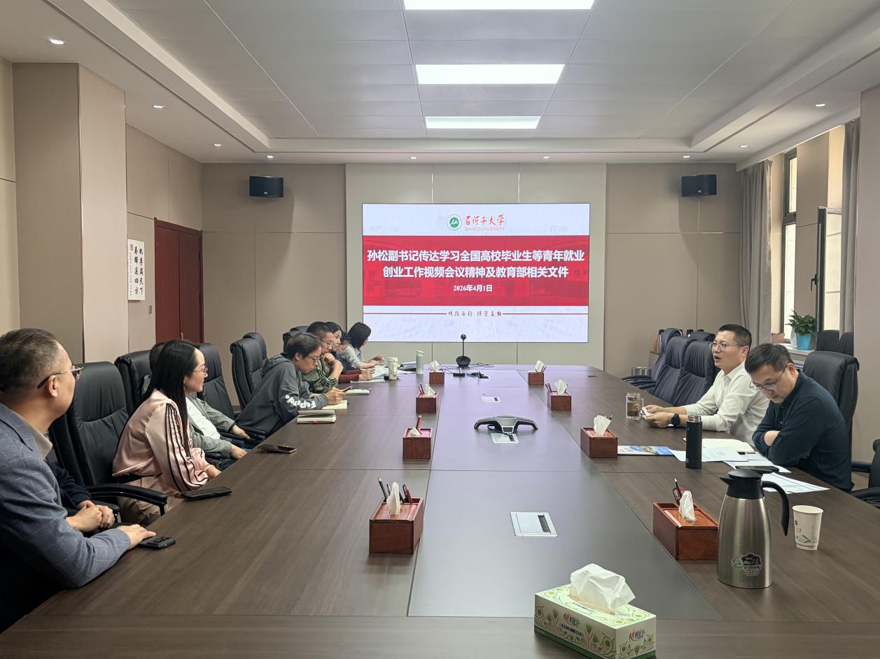2026年4月1日,师范学院召开2026届研究生就业推进会,紧扣“招生—培养—就业”一体化工作思路,立足师范专业办学特色,统筹部署研究生就业及配套保障工作,切实把稳就业工作落到实处,全力推动2026届研究生实现更加充分、更高质量就业。学院党委副书记孙松、副院长朱海东,各职能科室负责同志及全体研究生导师参会,凝聚全员合力为研究生就业保驾护航。